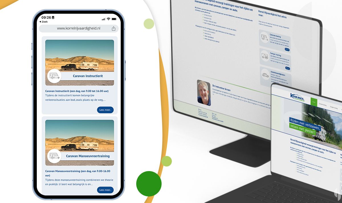 Voor Korrel Rijvaardigheid realiseerden we een overzichtelijke en gebruiksvriendelijke website. Korrel verzorgt rijvaardigheidstrainingen voor auto, caravan en camper, met aandacht voor veilig rijden en gecontroleerd manoeuvreren.